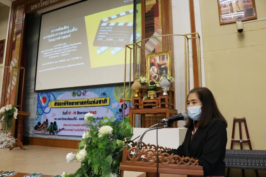 วันพฤหัสบดีที่ 18 สิงหาคม 2565 เวลา 9.00 น. มหาวิทยาลัยแม่โจ้-แพร่ เฉลิมพระเกียรติ ร่วมกับกระทรวงการอุดมศึกษา วิทยาศาสตร์วิจัยและนวัตกรรม และองค์การบริหารส่วนจังหวัดแพร่ ได้ร่วมจัดงานสัปดาห์วิทยาศาสตร์แห่งชาติ ส่วนภูมิภาค ประจำปี 2565 โดยมีนายวิเชียร อนุสาสนนันท์ รองผู้ว่าราชการจังหวัดแพร่ เป็นประธานในพิธีเปิดงาน อาจารย์ ดร.ศุกรี อยู่สุข คณบดีมหาวิทยาลัยแม่โจ้-แพร่ เฉลิมพระเกียรติ กล่าวต้อนรับแขกผู้มีเกียรติที่มาร่วมงาน และมี ผู้ช่วยศาสตราจารย์ ดร.ขวัญจรัส เชิงปัญญา ประธานคณะกรรมการจัดงาน กล่าวรายงาน ณ ห้อง N104 สโลป อาคารเทพ พงษ์พานิช มหาวิทยาลัยแม่โจ้-แพร่ เฉลิมพระเกียรติ เพื่อเป็นการน้อมรำลึกถึงพระมหากรุณาธิคุณ และเทิดพระเกียรติ แด่พระบาทสมเด็จพระจอมเกล้าเจ้าอยู่หัว รัชกาลที่ 4 พระบิดาแห่งวิทยาศาสตร์ไทย การจัดงานในครั้งนี้มีวัตถุประสงค์ ดังนี้ 1) เพื่อเทิดพระเกียรติ พระปรีชาสามารถด้านวิทยาศาสตร์และเทคโนโลยีของพระบาทสมเด็จพระจอมเกล้าเจ้าอยู่หัว รัชกาลที่ 4 ในฐานะทรงเป็น “พระบิดาแห่งวิทยาศาสตร์ไทย” 2) เพื่อให้เยาวชนและประชาชนทั่วไป มีความรู้และตระหนักถึงความสำคัญของวันวิทยาศาสตร์แห่งชาติ 3) เพื่อส่งเสริมและเผยแพร่ผลงานการค้นคว้าวิจัยทางวิทยาศาสตร์ เทคโนโลยี และนวัตกรรมของคนในพื้นที่ภูมิภาค 4) เพื่อกระตุ้นให้เยาวชนและประชาชนทั่วไปมีความสนใจในวิทยาศาสตร์มากขึ้น และประยุกต์นำวิทยาศาสตร์และเทคโนโลยีไปใช้ในชีวิตประจำวัน และเป็นการกระตุ้นและเปิดโอกาสให้นักเรียน นักศึกษาในจังหวัดแพร่ และจังหวัดใกล้เคียง ได้แสดงออกและพัฒนาศักยภาพทางความคิดทางด้านวิทยาศาสตร์และเทคโนโลยี ทั้งยังเป็นการสร้างความร่วมมือของสถาบันการศึกษาในจังหวัดแพร่ และจังหวัดใกล้เคียงอีกด้วย การจัดงานสัปดาห์วิทยาศาสตร์แห่งชาติ ส่วนภูมิภาค ประจำปี 2565 รูปแบบการจัดงานในหัวข้อ “เศรษฐกิจชีวภาพ เศรษฐกิจหมุนเวียน เศรษฐกิจสีเขียว BCG : Bio-Circular Green Economy” จัดขึ้นระหว่างวันที่ 17-19 สิงหาคม 2565 ณ มหาวิทยาลัยแม่โจ้-แพร่ เฉลิมพระเกียรติ เนื่องจากสถานการณ์การระบาดของโรคโควิค-19 ที่ยังคงมีอยู่ในปัจจุบัน จึงทำให้รูปแบบการจัดงานในปีนี้มีการปรับเปลี่ยนให้เข้ากับสถานการณ์ โดยมีการจัดกิจกรรมใน 2 รูปแบบ คือ แบบออนไลน์ และแบบจัดในมหาวิทยาลัย กิจกรรมรูปแบบออนไลน์ ประกอบด้วย - การประกวดการแสดงทางวิทยาศาสตร์ (Science Show) - การประกวดโครงงานวิทยาศาสตร์ - การประกวดหนังสั้นวิทยาศาสตร์ ส่วนกิจกรรมที่จัดภายในมหาวิทยาลัย ประกอบไปด้วย - นิทรรศการเทิดพระเกียรติพระบ