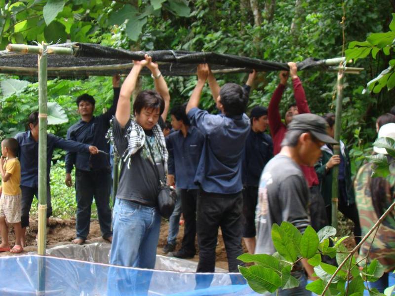 เมื่อวันที่ 27-30 ที่ผ่านมาทีมงานชมรมอาสาพัฒนาสังคม มหาวิทยาลัยแม่โจ้-แพร่ เฉลิมพระเกียรติ ในการนำของท่านอาจารย์อำนวยพร ใหญ่ยิ่ง ที่ปรึกษาชมรม ร่วมด้วย อ.ดร.ประเจต อำนาจ อ.วรวุฒิ งามพิบูลเวช คุณเปรมชัย สุทธคุณ และคุณวัลลภ อัฐวงศ์ พร้อมด้วยทีมงานหลักชมรมอาสาพัฒนาสังคม นำโดยนักศึกษา นายมโนวัฒน์ เห็มวงค์ นางสาวชุติกาญจน์ แป้นโพธิ์ นางสาวอรอนงค์ รานอก และสมาชิกชมรมอาสาฯ เดินทางเข้าหมู่บ้านน้ำเคิม เพื่อส่งเสริมและสาธิตการเลี้ยงกบให้สอดคล้องกับสภาพแวดล้อมและธรรมชาติ จำนวน 4 บ่อดิน ปล่อยลูกกบ จำนวน 1,600 ตัว พร้อมอาหารเสริมสำเร็จรูป ซึ่งจะทำให้เกิดการสร้างรายได้ ชาวบ้านมีอาหารบริโภค และในระยะยาวชาวบ้านสามารถขยายผลการคัดเลือกพ่อแม่พันธุ์สำหรับการเลี้ยงรุ่นต่อไป ทั้งนี้ทีมงานชมรมอาสาฯ จะได้เข้าพื้นที่บ้านน้ำเคิมในครั้งต่อไป จำนวน 2 ครั้ง เพื่อช่วยให้คำปรึกษาแก่ผู้เลี้ยงกบ ณ บ้านน้ำเคิม ต.ปิงหลวง อ.นาหมื่น จ.น่าน