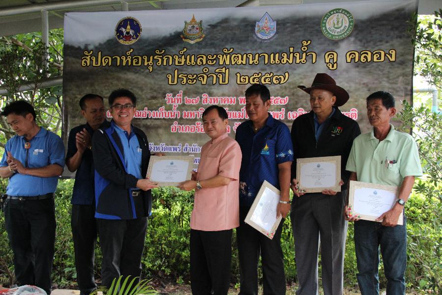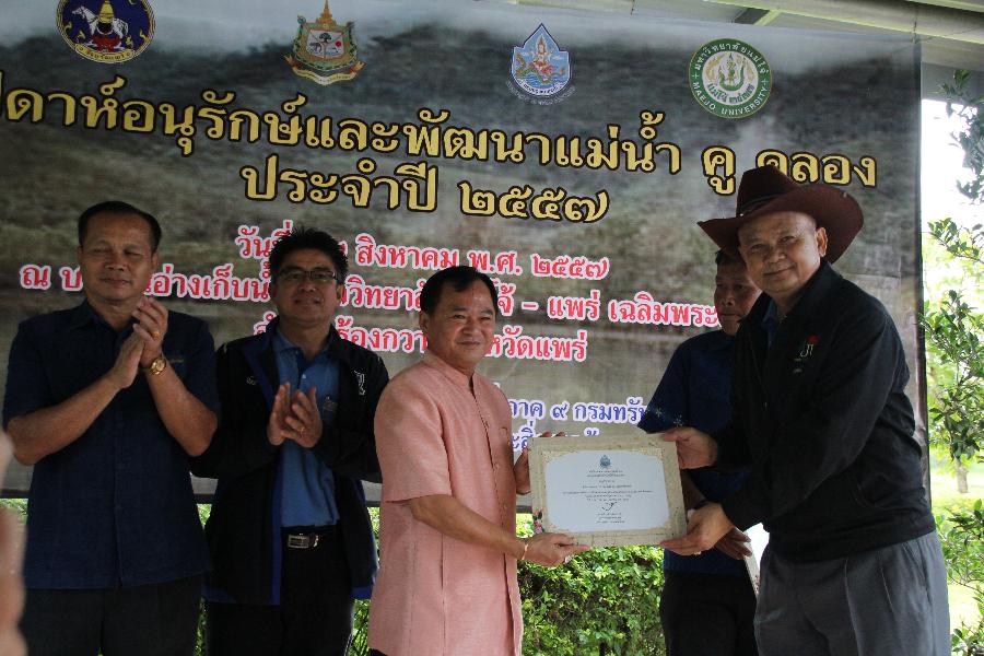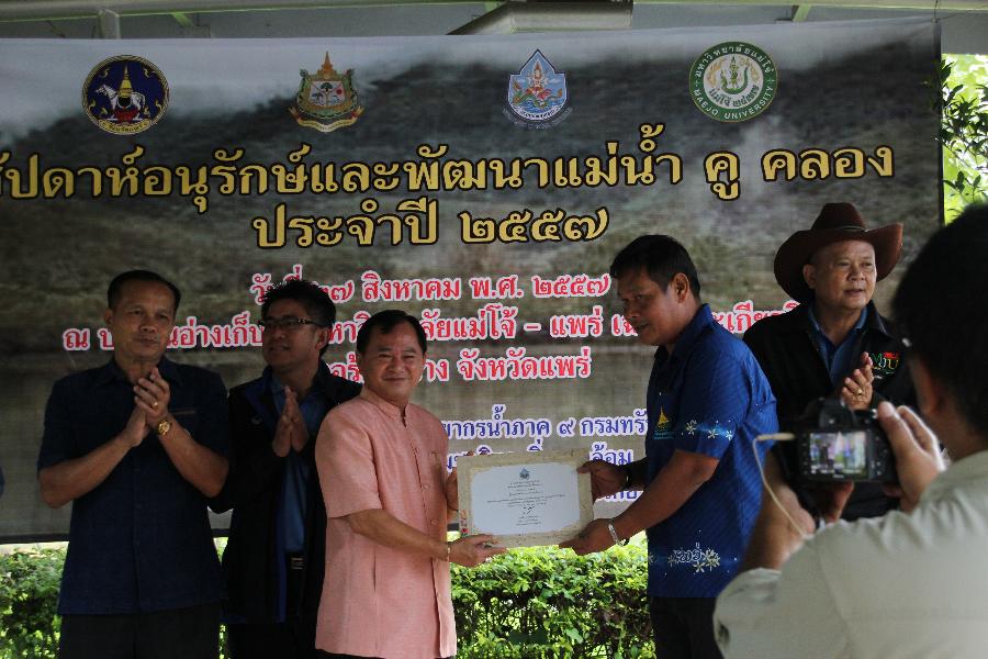 เมื่อวันที่ 27 สิงหาคม 2557 ตั้งแต่เวลา 08.30 น. ที่ผ่านมา สำนักงานทรัพยากรน้ำภาค 9 โดยส่วยประสานงานและบริหารจัดการลุ่มน้ำ เลขานุการคณะกรรมการลุ่มน้ำยม ได้จัดกิจกรรม สัปดาห์อนุรักษ์และพัฒนาแม่น้ำ คู คลอง จังหวัดแพร่ ประจำปี 2557 ณ บริเวณอ่างเก็บน้ำมหาวิทยาลัยแม่โจ้-แพร่ เฉลิมพระเกียรติ โดยมีคณาจารย์ เจ้าหน้าที่ องค์การนักศึกษา สภานักศึกษา นักศึกษาสาขาวิชาเกษตรป่าไม้ และแขกผู้มีเกียรติ เข้าร่วมกิจกรรมเกือบ 500 คน กิจกรรมภายในงานประกอบด้วย การปล่อยพันธุ์ปลาน้ำจืด การปลูกต้นไม้และหญ้าแฝก และการกำจัดวัชพืช และปรับปรุงภูมิทัศน์โครงการพัฒนาแหล่งน้ำ ในการนี้ได้รับเกียรติจาก นายชัยสิทธิ์รัตนชัยสิทธิ์ ปลัดจังหวัดแพร่ เป็นผู้แทนผู้ว่าราชการจังหวัดแพร่ เป็นประธานเปิดโครงการและส่วนราชการที่เข้าร่วมประกอบด้วยสำนักงานทรัพยากรน้ำภาค 9 พิษณุโลก ศูนย์การกีฬาแห่งประเทศไทยจังหวัดแพร่ ประมงจังหวัดแพร่ สถานีตำรวจภูธรร้องกวาง และยังได้รับเกียรติจากผู้ใหญ่ใจดี มอบรางวัลแก่ผู้ชนะการแข่งขันประกวดเรียงความและภาพวาดระบายศรี "แหล่งน้ำที่ข้าพเจ้าอยากเห็น" และรับมอบอุปกรณ์กีฬาอีกด้วย