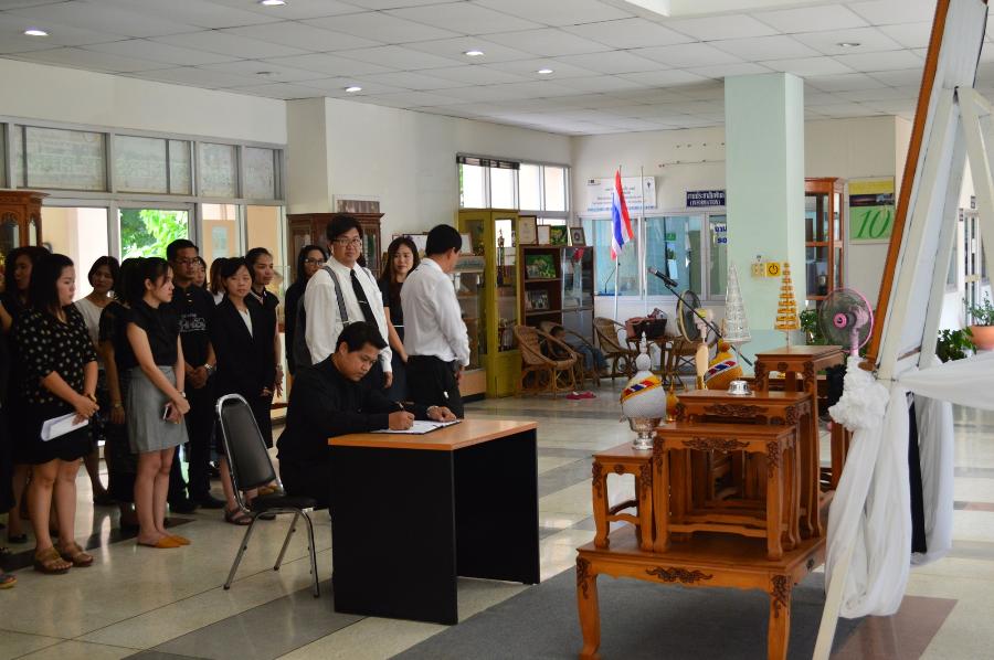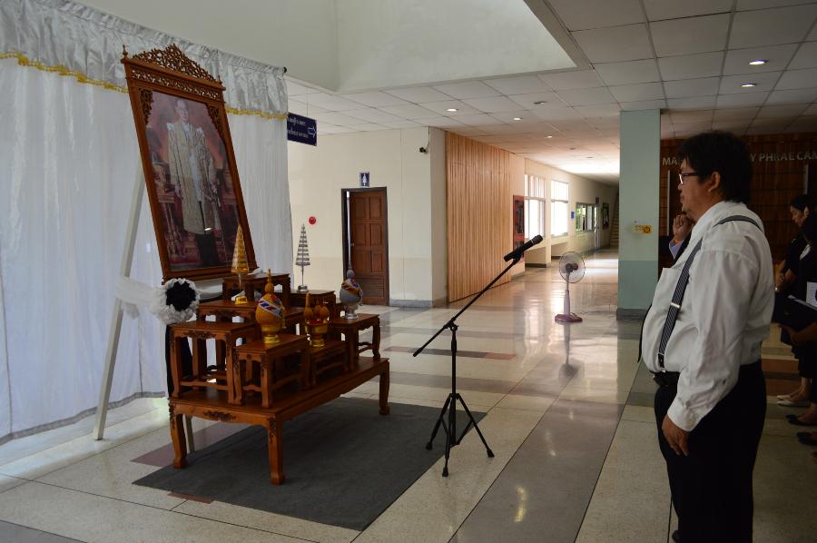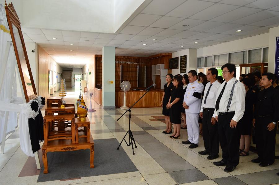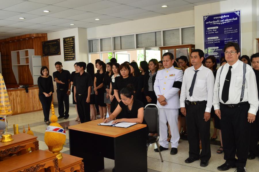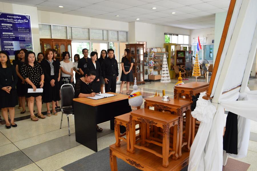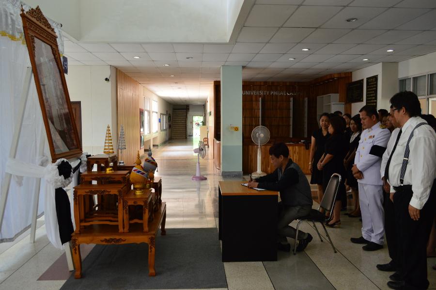 วันที่ 14 ตุลาคม 2559 เวลา 13.30 น. มหาวิทยาลัยแม่โจ้-แพร่ เฉลิมพระเกียรติ นำโดย อาจารย์ ดร.ศุกรี อยู่สุข ผู้อำนวยการมหาวิทยาลัย พร้อมด้วยผู้บริหาร คณาจารย์ และเจ้าหน้าที่ น้อมเกล้าน้อมกระหม่อมถวายอาลัย ส่งดวงพระวิญญาณพระบาทสมเด็จพระเจ้าอยู่หัวฯ ในพระบรมโกศ เสด็จสู่สวรรคาลัย ณ บริเวณโถงกลาง ชั้น 1 อาคารนำชัย ทนุผล มหาวิทยาลัยแม่โจ้-แพร่ เฉลิมพระเกียรติ