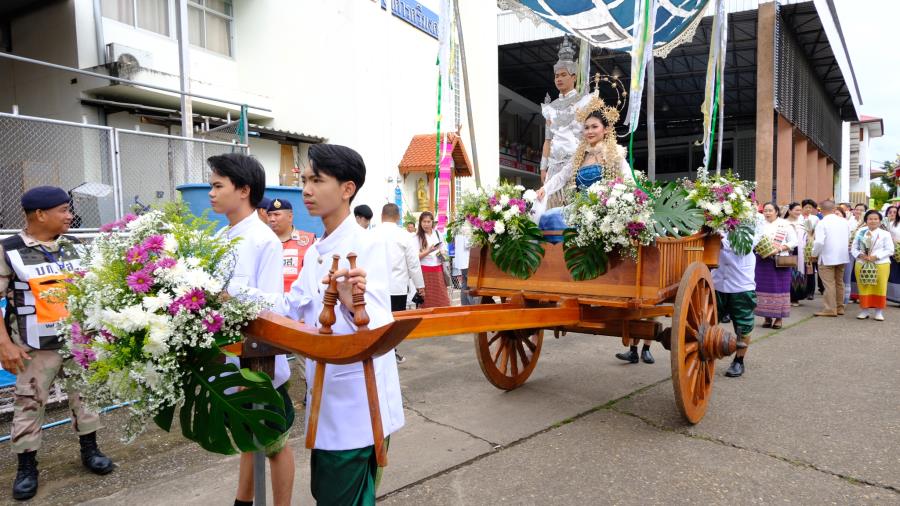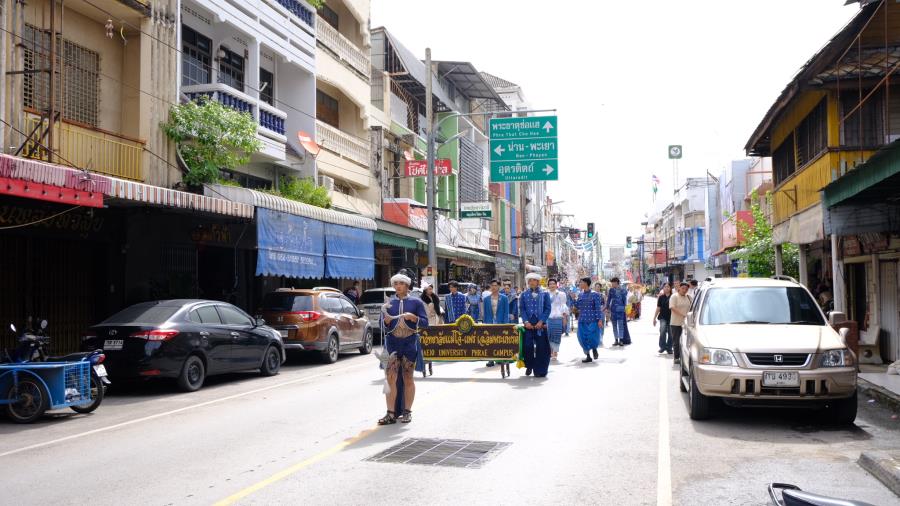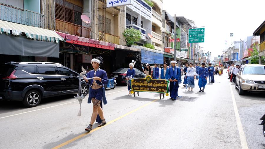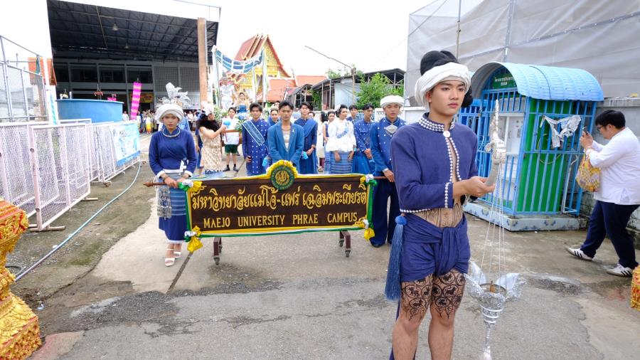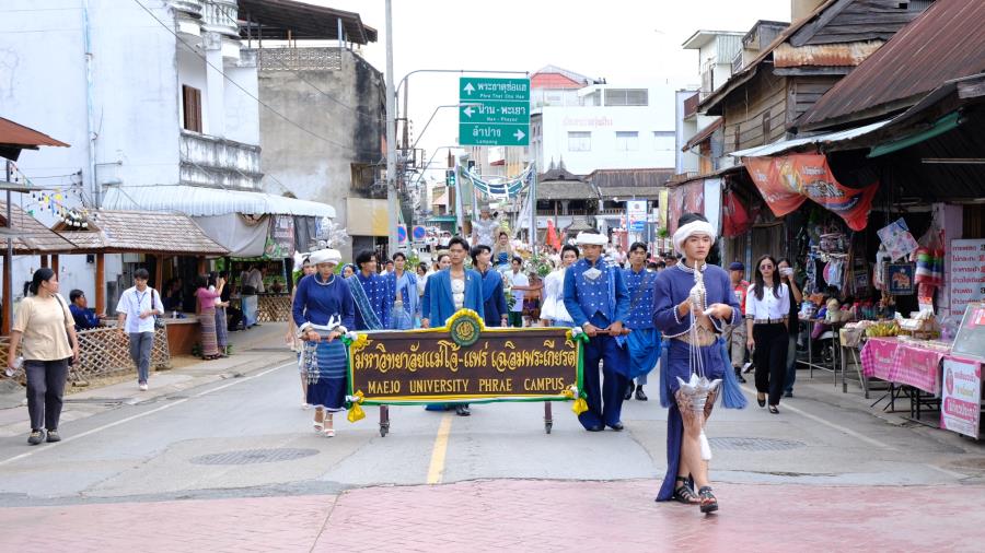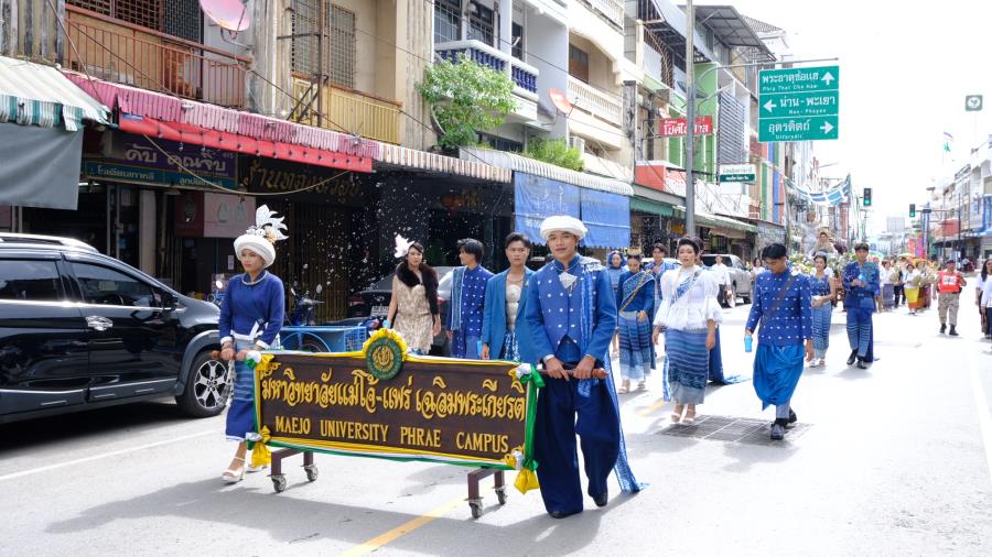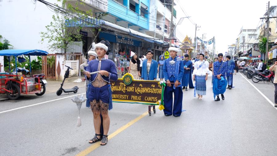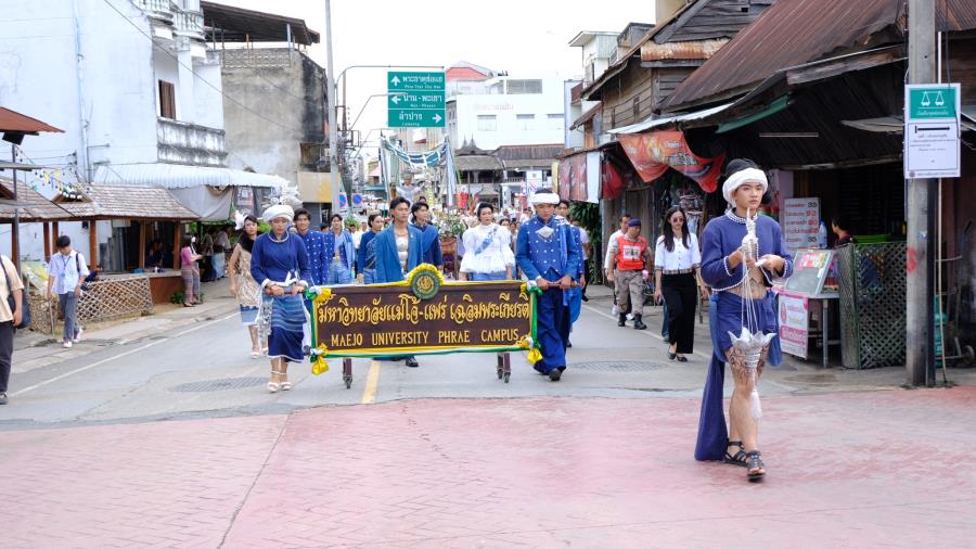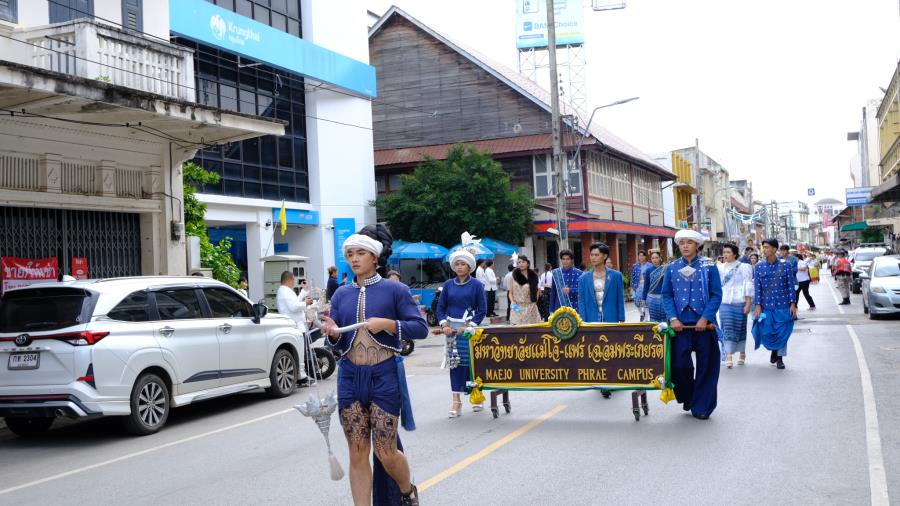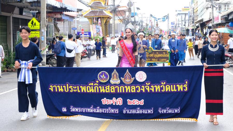 วันพุธที่ 15 ตุลาคม 2568 เวลา 9.00 น. ผู้ช่วยศาสตราจารย์ ดร.รัฐพงศ์ ปกแก้ว คณบดีมหาวิทยาลัยแม่โจ้-แพร่ เฉลิมพระเกียรติ ผู้บริหาร บุคลากร และนักศึกษา เข้าร่วมงานประเพณี“กิ๋นสลากหลวง”จังหวัดแพร่ ประจำปี 2568 ณ วัดพระบาทมิ่งเมืองวรวิหาร อำภอเมืองแพร่ จังหวัดแพร่ ซึ่งมีเคลื่อนขบวนแห่ ”งานประเพณีกิ๋นสลากหลวงจังหวัดแพร่” นำโดย นายสมชัย เลิศประสิทธิพันธ์ ผู้ว่าราชการจังหวัดแพร่ ประธานการจัดงาน หัวหน้าส่วนราชการ สมาคม ชมรมรัฐวิสาหกิจ เอกชนและประชาชน ฯลฯ เดินนำขบวนแห่ก๋วยสลาก “งานประเพณีกิ๋นสลากหลวง จังหวัดแพร่ ประจำปี 2568” จากตลาดแพร่ปรีดา ไปตามเส้นทางถนนเจริญเมือง ถึงวัดพระบาทมิ่งเมืองวรวิหาร ซึ่งการจัดงานในครั้งนี้มีวัตถุประสงค์เพื่อส่งเสริม รักษาประเพณีอันทรงคุณค่าและคุณธรรม ในด้านความกตัญญูกตเวทีต่อวิญญาณของบรรพบุรุษ สร้างความสามัคคี ปรองดอง และเป็นการส่งเสริมการท่องเที่ยวเชิงวัฒนธรรมและกระตุ้นเศรษฐกิจภายในจังหวัดแพร่