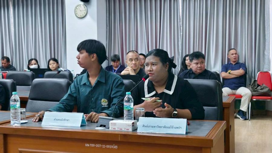 วันจันทร์ที่ 27 ตุลาคม 2568 มหาวิทยาลัยแม่โจ้-แพร่ เฉลิมพระเกียรติ โดยการนำของท่านผู้ช่วยศาสตราจารย์ ดร.รัฐพงศ์ ปกแก้ว คณบดีมหาวิทยาลัยคณะทำงานฝ่ายแผนงาน จัดโครงการประชุมเสวนาเชิงปฏิบัติการ “การทบทวนและจัดทำแผนปฏิบัติงาน ประจำปีงบประมาณ พ.ศ. 2569” ณ ห้องประชุมกวางบุษราคัม ชั้น 3 อาคารนำชัย ทนุผล ในการนี้ได้รับเกียรติจากภาคประชาสัมคม นักศึกษาและศิษย์เก่า ได้เสนอมุมมองแนวทางการพัฒนามหาวิทยาลัย